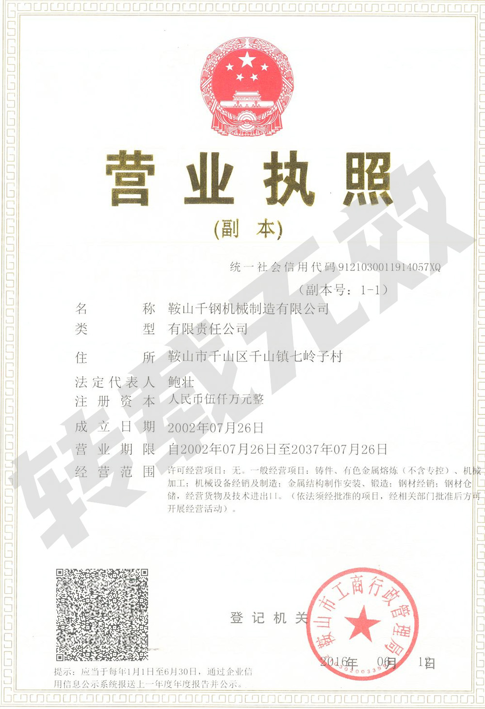 鞍山千鋼機(jī)械制造有限公司